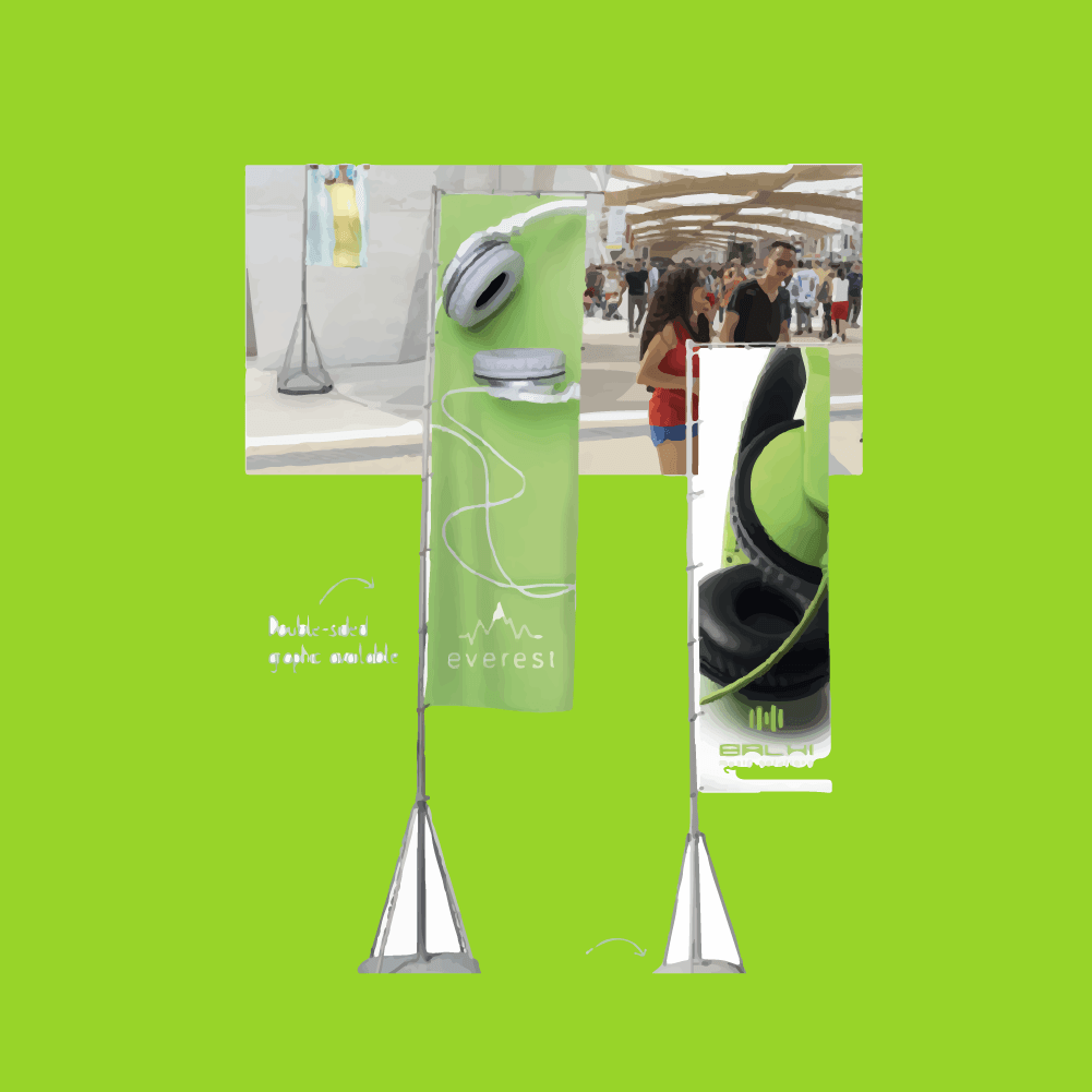 Button- Omilla jaloilla seisova, alumiinirunkoinen banneriteline